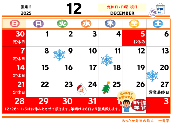 | 【お知らせ 】年末年始の営業案内 |