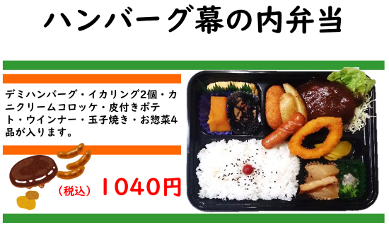 | ★ お弁当に+110円で【のり&明太子】に出来ます。 |